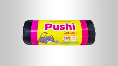 Пакеты для мусора Pushi 240 л, 15 шт, 36 мкм, черные