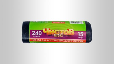 Мешки мусорные, рулон 240л/15 шт., черный 18 мкм