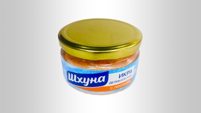 Икорное рыбное изделие. Икра деликатесная «Шхуна» с лососем/креветкой в соусе 165г,СП Санта Бремор,